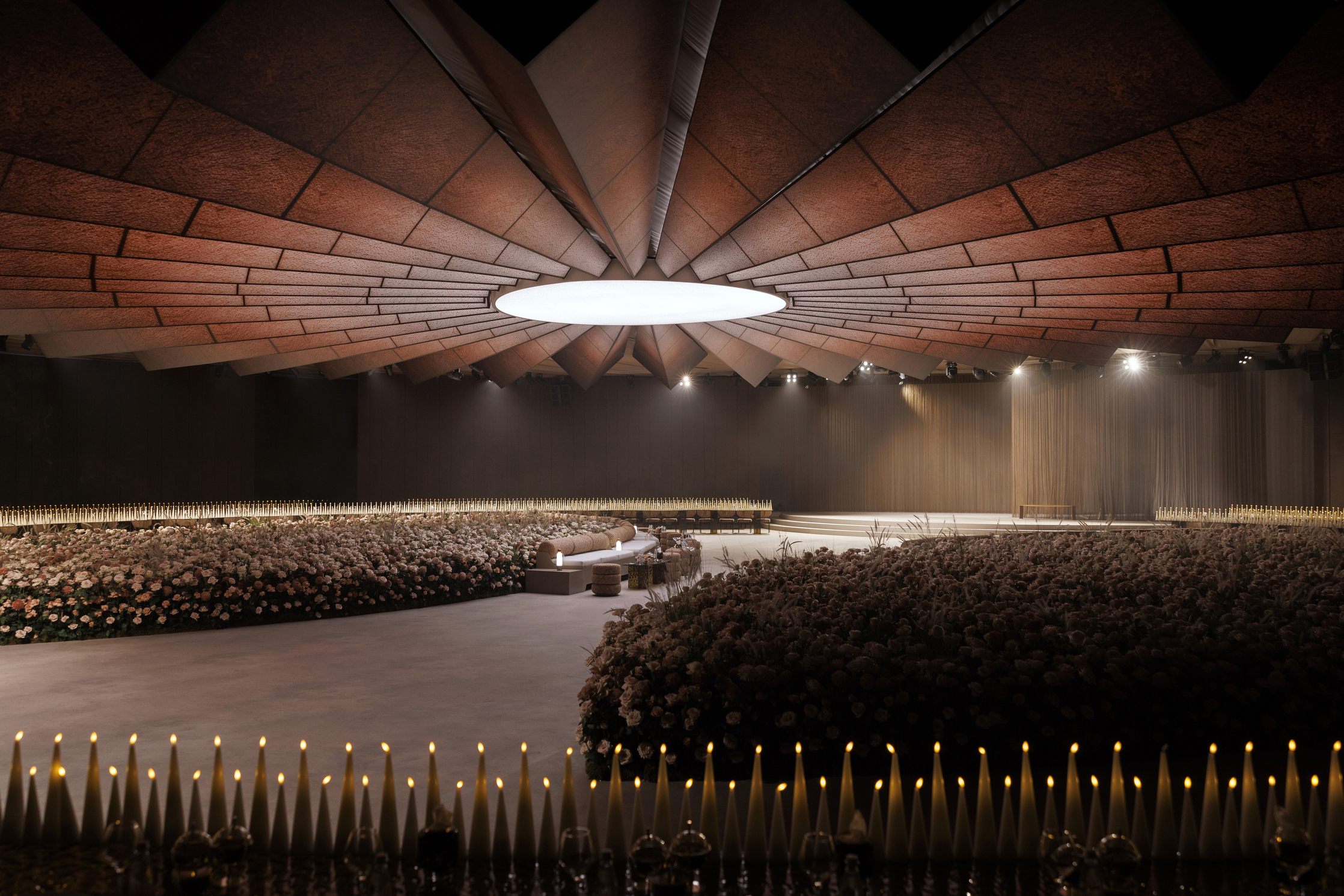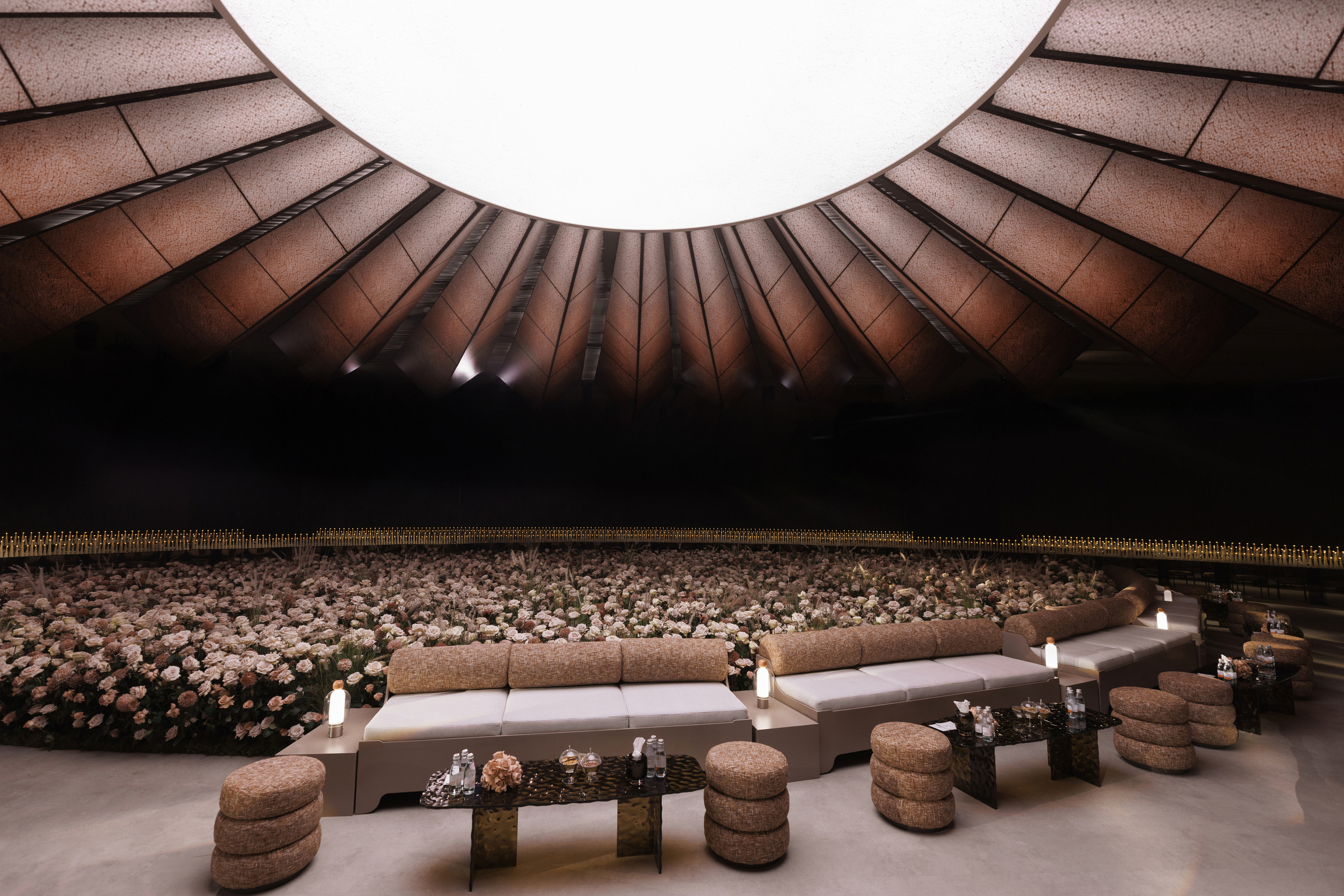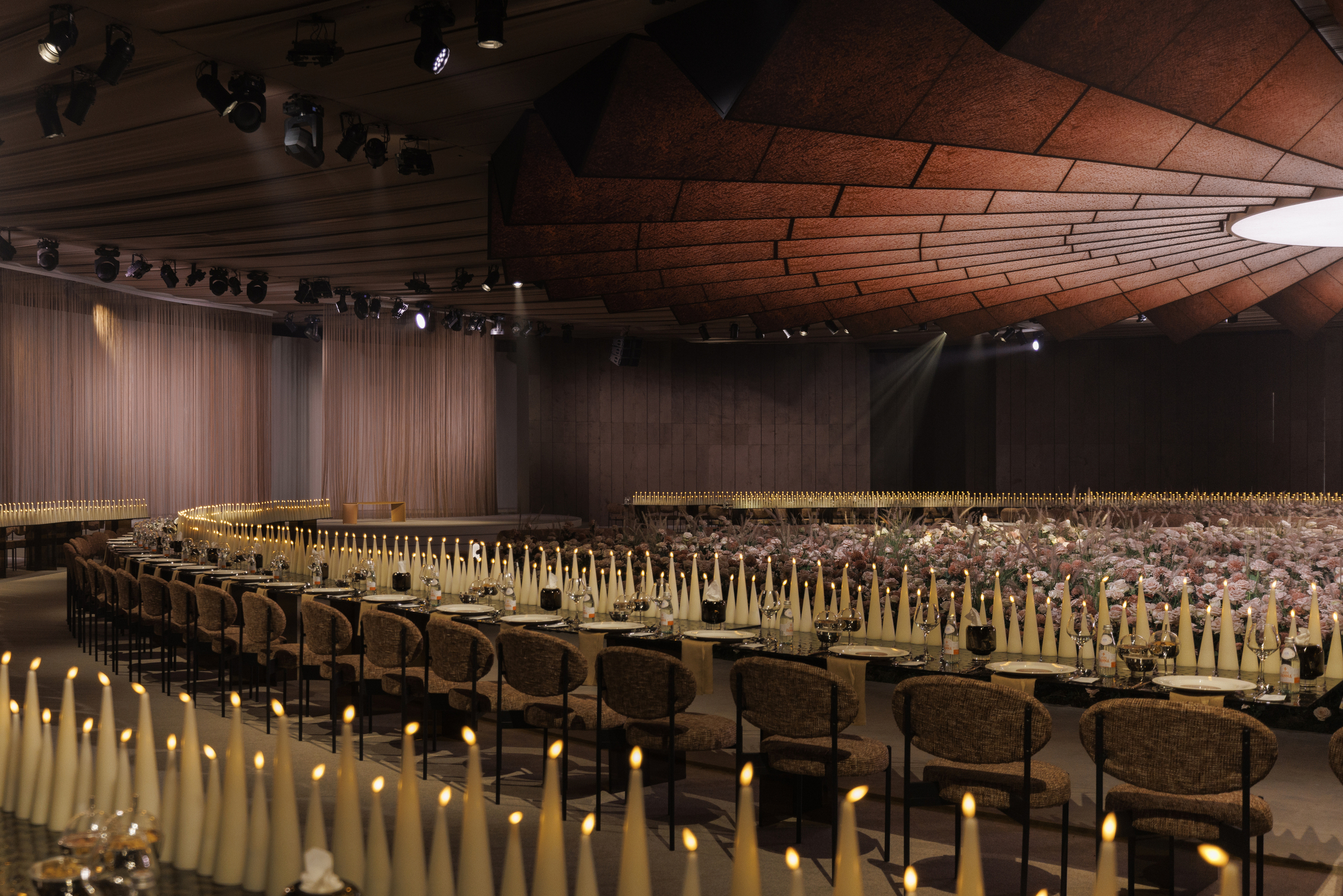 SOLARIS was envisioned as a world unlike any other, a space where reality dissolves into something cinematic, immersive, and unfamiliar. First teased through our AI trailer, the story unfolded detail by detail: gold chain mesh cascading with intention, thousands of roses by Kadi Boutique softening the unknown, and a handcrafted ceiling rippling above like an interplanetary sun. More than a wedding design, SOLARIS is a world imagined and brought to life, a testament to what happens when vision meets belief, and dreams are given the space to exist